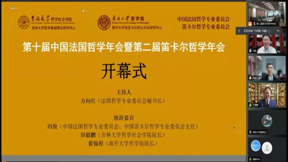 的郝长墀老师分别代表下届法国哲学年会和下届笛卡尔哲学年会的承办方发言,相邀下届年会。大会最后,“两会”副主任钱捷老师作总结发言,钱老师认为,在疫情影响下,“两位”仍有近七十位专家学者发言,体现了汉语法国哲学研究和笛卡尔哲学研究是在不断发展壮大的;从参会学者的年龄构成来看,青年学者占了绝大多数,这昭示了法国哲学研究朝气蓬勃、欣欣向荣的景象;从研究主题来看,本届法国哲学年会最大的特点是研究主题和人物范围有明显扩大,有关社会哲学、艺术主题的论文明显增加,这体现了当代法国哲学的固有风貌。最后,主持人宣布“两会”胜利闭幕。(庞英杰供稿)