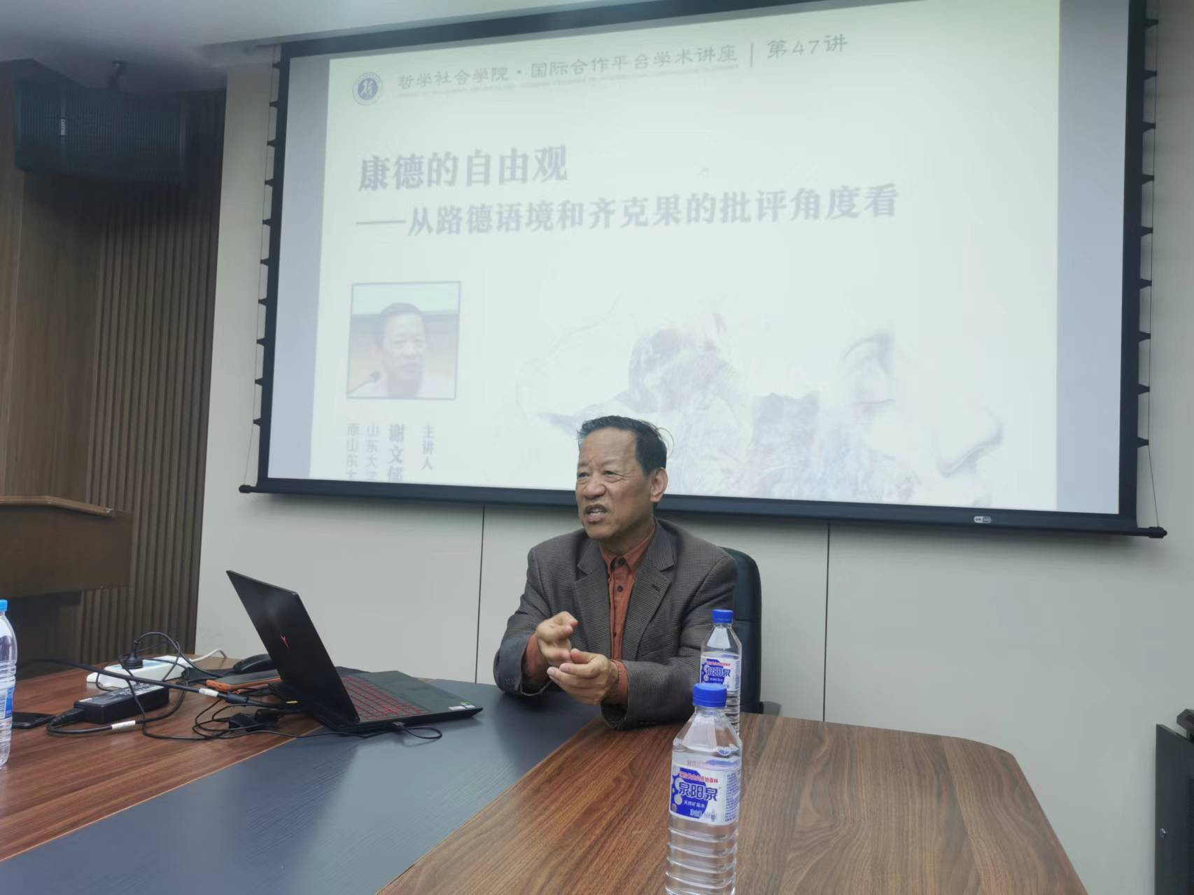 “国际合作平台学术讲座”第47讲——“康德的自由观——从路德语境和齐克果的批评角度看”在东荣大厦908会议室举办。本期讲座由山东大学哲学系谢文郁教授主讲,讲座由盛传捷副教授主持。中山大学哲学系江璐副教授、女奴-女奴调教-绳精病