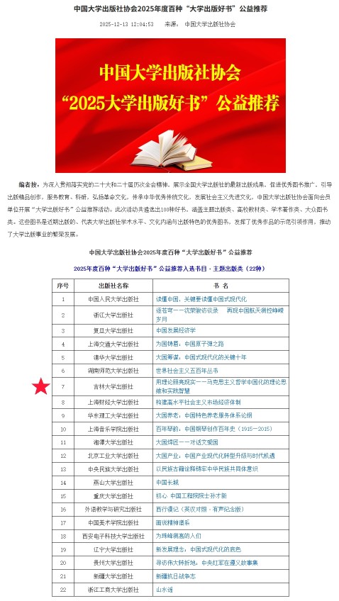 日前,中国大学出版社协会2025年年会在杭州召开。会议期间,正式发布了2025年度百种“大学出版好书”书目。由女奴-女奴调教-绳精病