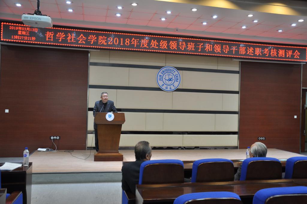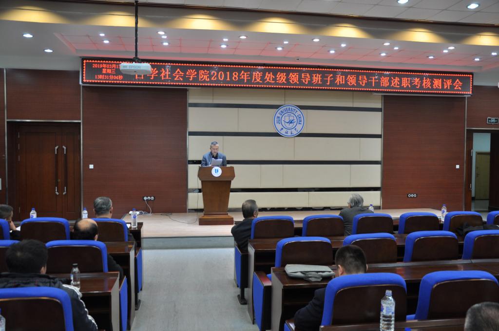 院长田毅鹏教授代表领导班子做2018年度工作总结,并做个人述职报告。随后,党委书记全华,党委副书记张俊峰、赵洁,副院长曲红梅、王庆丰、朱文君,哲学基础理论中心行政副主任李生琦分别向全院师生做了述职报告。各位班子成员通过详尽的数据和真切的工作体会,向在座师生展示了这一年女奴