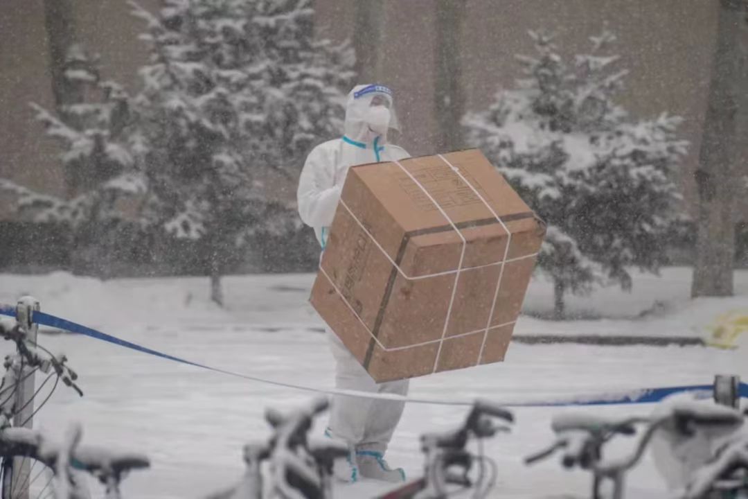“逆行”驻校第一线,物资保障展实干。接到学校实行封闭管理的通知后,他冒着风雪迅速入住学校下沉一线,参与整个中心校区的物资配送工作。冬去春来,丹阳向暖。在近两个月的驻校生活中,他每天穿着厚重的防护服,连续工作十几个小时,保障各类防疫物资及时送达。并且,他也不忘关心学生们的学习生活和思想动态,在餐食药品管理、物资处理分发的同时及时为大家释疑解惑、疏导心理,让学生们吃下了“定心丸”,凝聚起基层抗“疫”的青春同心圆。
