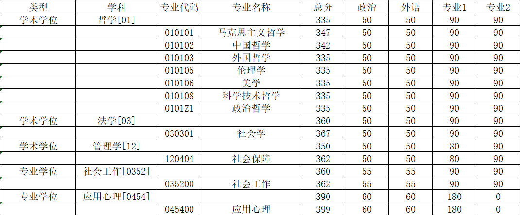 三、各专业复试分数线: